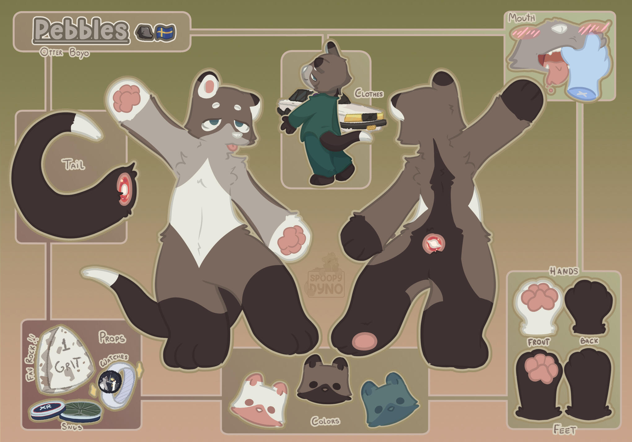 In this example we can see the two basic boxes, "Clothes", "Props" and "Tail", "Mouth" and "Paws" Close ups.
