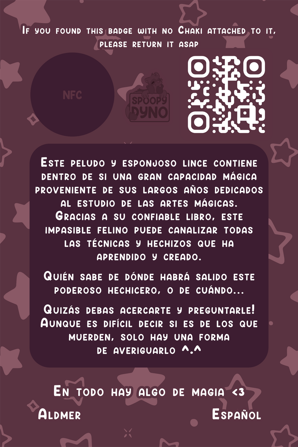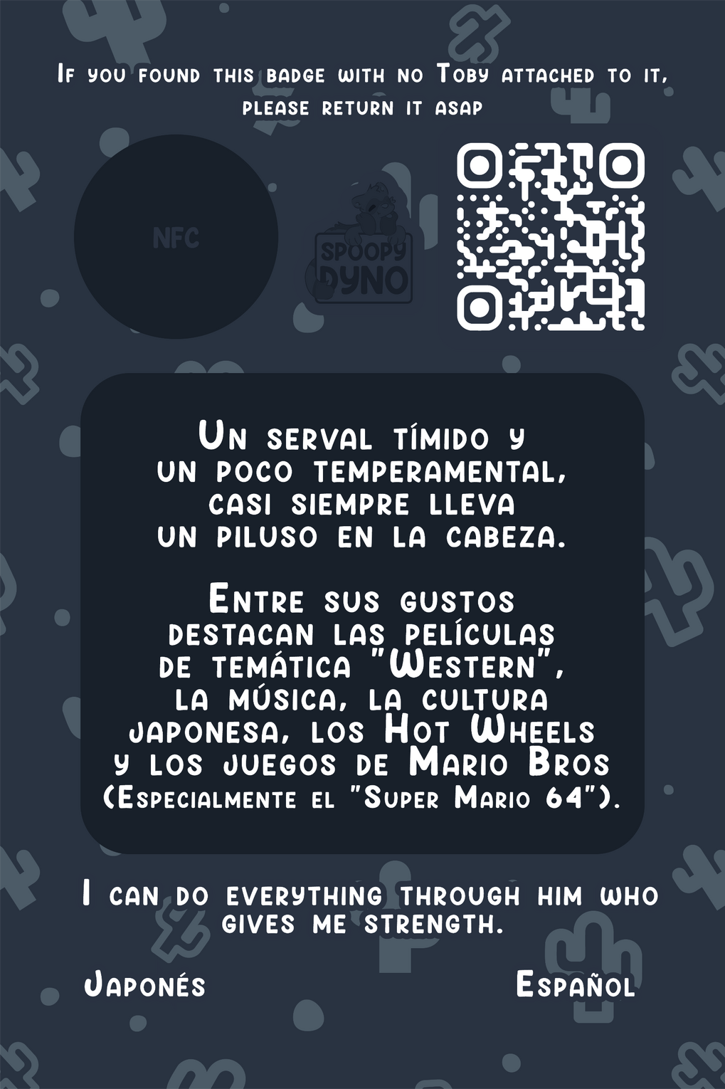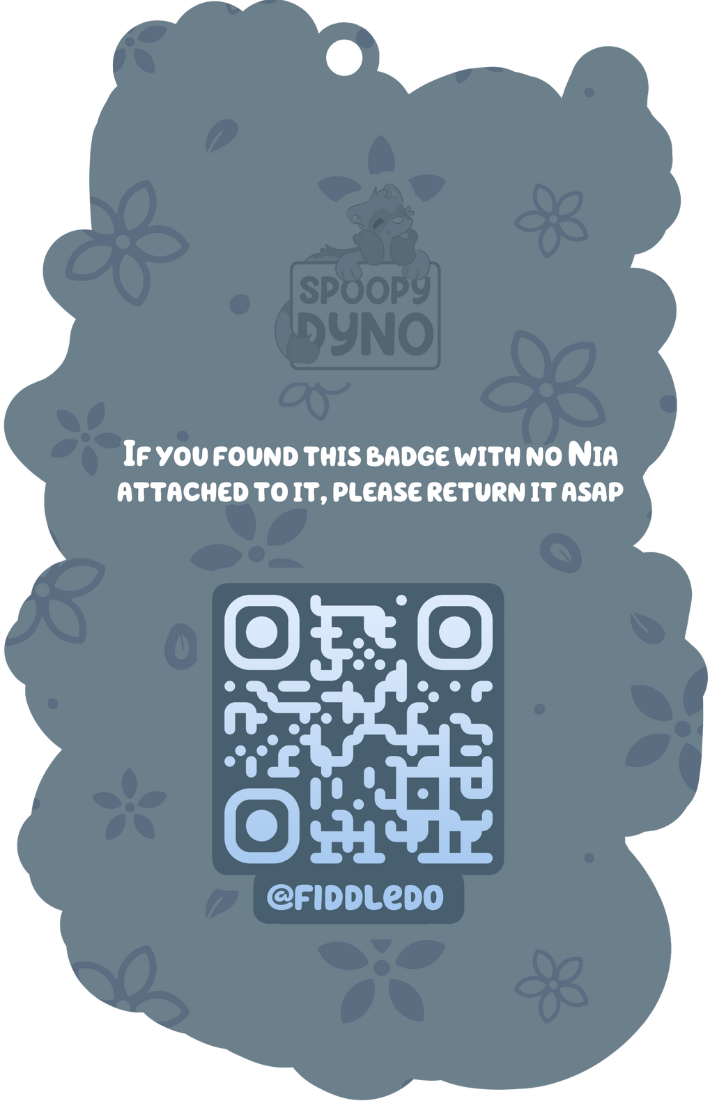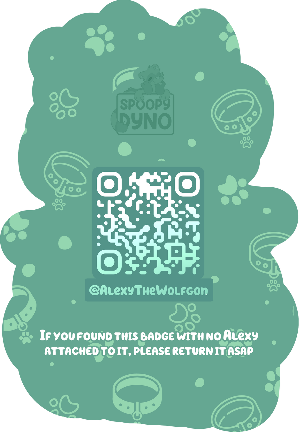 On the back there is a QR code along with an @ and a lost message.